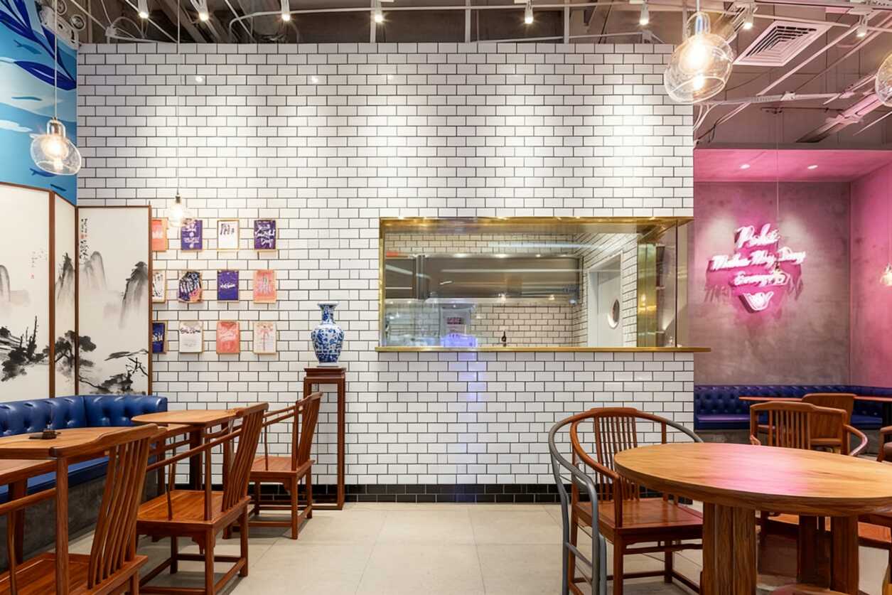 新中式混搭風絕了!這家餐廳用霓虹燈牌+水...